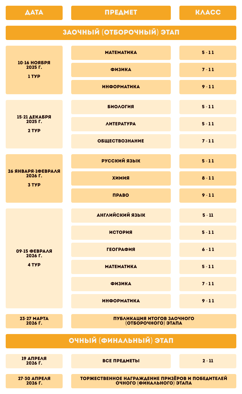 Календарь событий массовой многопредметной олимпиады ПОЛИМАТ 2025-2026 уч.год.