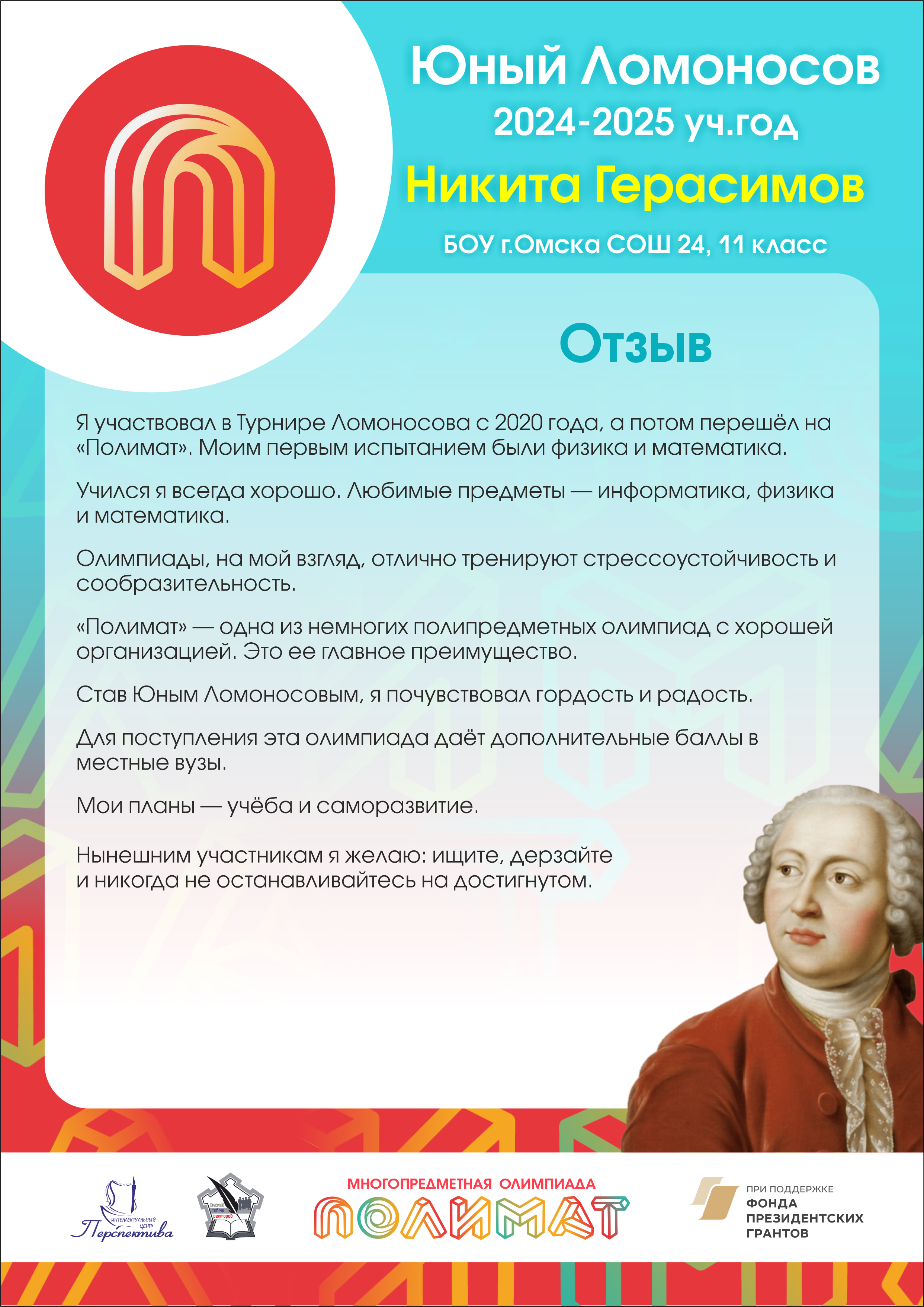 1) лауреаты заочного этапа XXIV турнира им. М.В. Ломоносова (2023 г.);