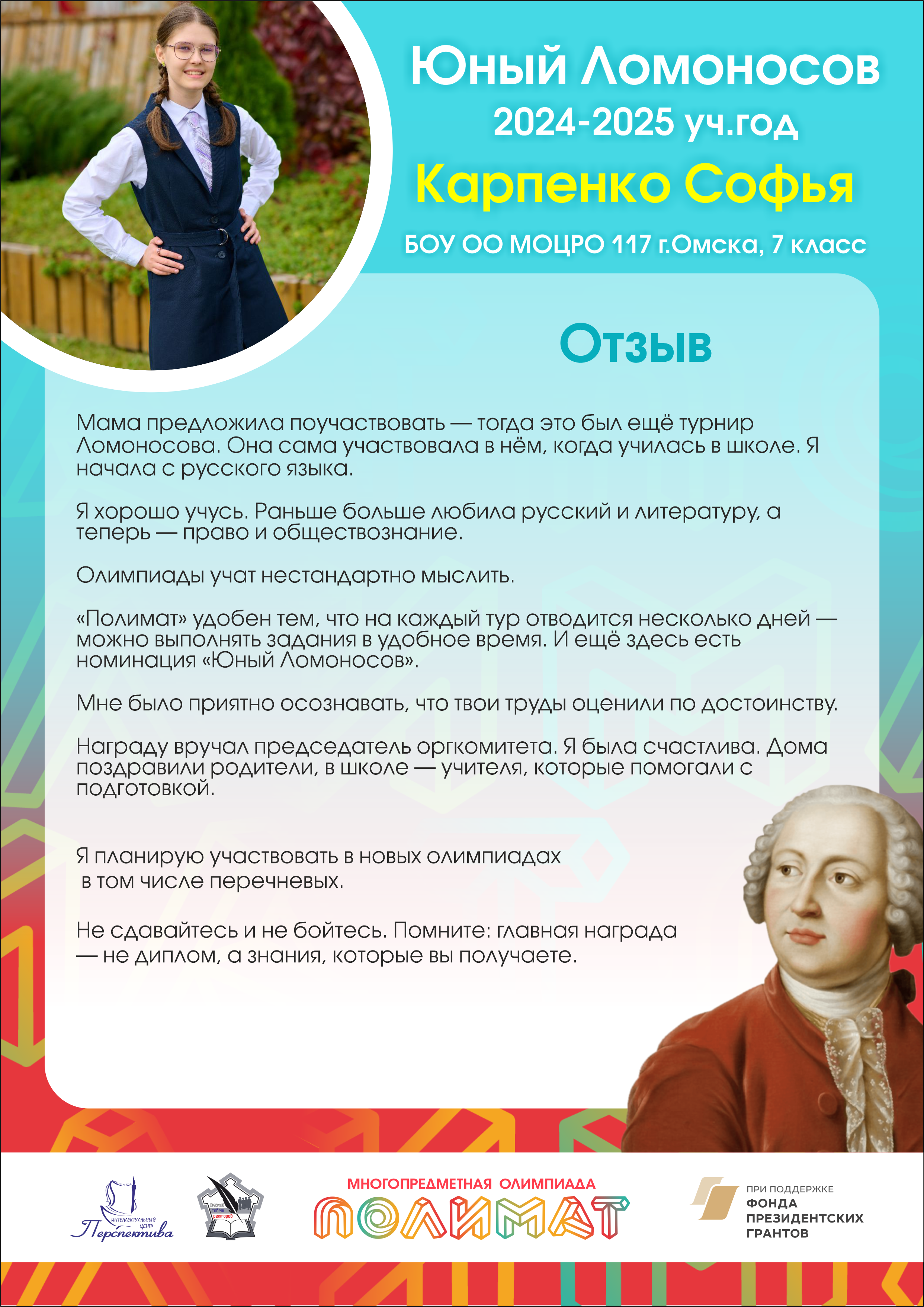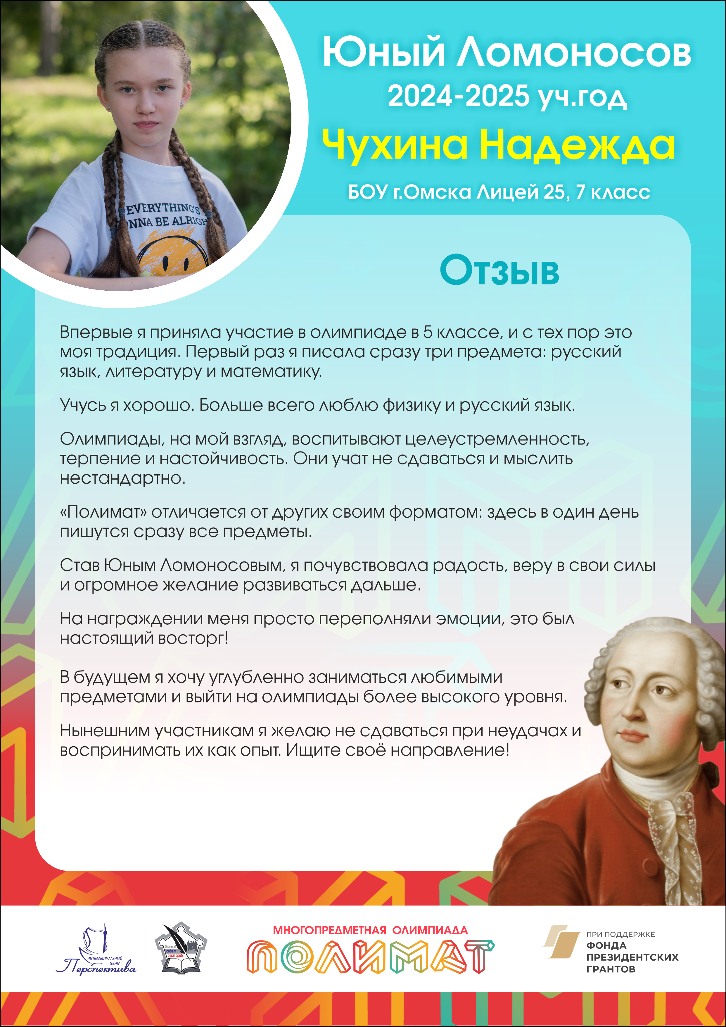 Ведь быть Юным Ломоносовым - гордость! Причем, большая гордость и для нас. Мы очень ценим и искренне радуемся вашим победам! 🏆